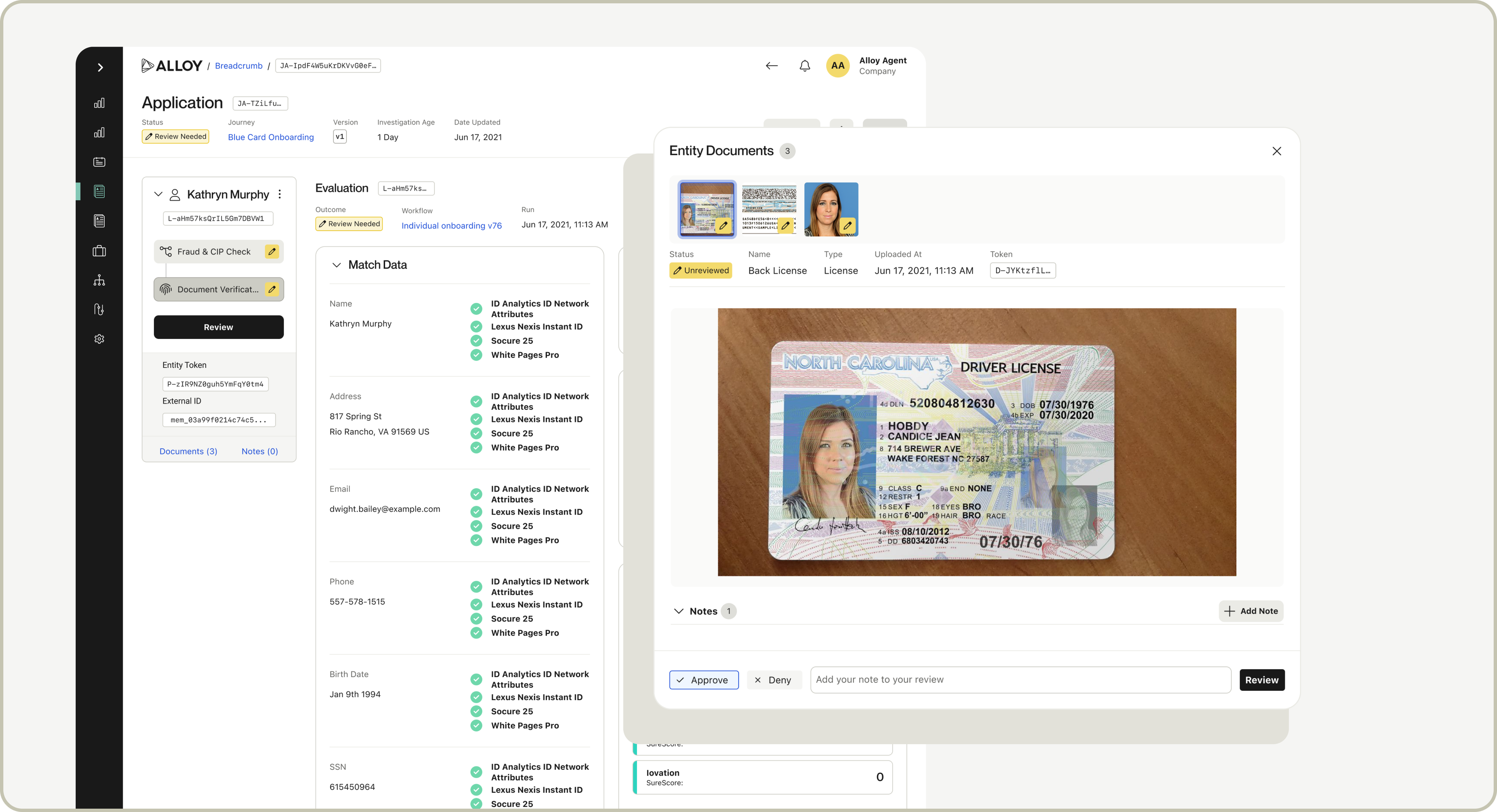 Users can now attach notes and/or upload supporting documentation to customer transactions and bank accounts as "evidence” - all from the Investigations UI!